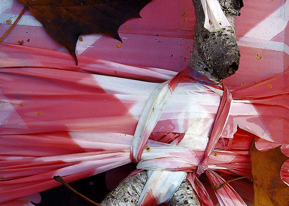 Tilia cordata hat deutliche Narben des Fällschnitts, als wäre die Gewalt des Werkzeugs noch im Holz eingeschrieben. Zwischen Halt und Aufgabe liegt Salix verkrampft und erschöpft über dem Wasser. Malus domestica verweigert jede Fruchtbarkeit: Kein Zweig, kein Apfel – nur die Leerstelle eines Erwarteten. Am Ende steht Betula: Mit Absperrband gefesselt und doch nicht gebrochen. Selbst in der Markierung als Gefahrenzone bleibt sie wehrhaft.